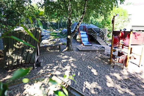På Jordgubben är barnen mellan 5 och 6 år. En ålder där många av barnen är hungriga på att lära sig mycket, och funderar på livet, spöken och mycket annat. Här på Jordgubb får barnen stöd och hjälp att undersöka, fantisera och lära. Musik och dramatik är några av verktygen vi använder. Klockan 8 är barnen välkomna in på Jordgubb. Då har vi fri lek, vi spelar spel, ritar och pratar. Hej och godmorgon När alla barnen kommit har vi samling inne i stora rummet. Det kan vara t ex sagosamling där vi läser eller hittar på sagor, musiksamling där vi spelar och sjunger eller språksamling där vi använder oss av ramsor och ordlekar. På fredagar samlas alla på förskolan inne på en avdelning och har fredagsmys ihop. Då sjunger vi ihop och ibland spelar någon av avdelningarna teater för sina kompisar. Eller så tittar vi på bio tillsammans. Drama för alla Drama är ett fint sätt att våga mer, upptäcka sig själv och förstå andra. Och ha roligt! När vi har drama på Jordgubb fantiserar vi tillsammans. Vi förvandlar oss till trollkarl, lejon, spratteldocka, tåg m m. Vi lever oss in i olika väsens sätt att vara och agera. Med glädje leker vi dramalekar, både högt och lågt. "Alla får vara med på sitt sätt". Syftet och målet är att vi ska våga tillsammans och ha kul. Upp till skogen Det tar ungefär tio minuter för oss att gå upp i skogen. Och det gör vi en dag i veckan. Däruppe ligger en damm, där det myllrar av liv. Liv som vi kan följa och upptäcka. Där finns fåglar och vackra ödlor, hanödlor och honödlor. Och så finns det grodor, som först bara är dallriga klumpar med svarta prickar i. Uppe i skogen plockar vi löv och stenar, klättrar i träd, gömmer oss och bygger kojor. Och så fikar vi. Efter lunch vilar vi en stund till ett bra sagoband. Barnens arbetsstund När barnen har vilat är det dags för arbetsstund. På tisdagar och torsdagar har barnen fått väva, sy med sykort och gjort olika finmotoriska övningar. På måndagar och onsdagar har vi arbetat med tema. Färg och form i konsttema På väggarna inne på jordgubb har det hängt kända verk som också finns på Göteborgs Konstmuseum. Tavlorna var ett led i vårt konsttema som började med att barnen, två-och-två fick välja ut en tavla som de tyckte var någonting speciellt. Tavlan ramades in och så fick barnen undersöka och tänka på sin egen tavla. Vad som kändes när de tittade på den, vilka färger konstnären valt o s v. Barnen fick sen två-och-två berätta för sina kompisar om sin tavla. Vad de tyckte och kompisarna fick ställa frågor och säga vad de tyckte. Som avslutning på temat åkte vi till Göteborgs Konstmuseum och såg på varje barns tavla i sällskap med intendenten på Konstmuséet. Det var stora ögon och barnen kände stolthet för sina tavlor. Aha, det blir så där! Under konsttemat fick barnen arbeta med olika färger och målartekniker. Personalen har introducerat och berättat hur man kan göra på måndagen, barnen har fått börja känna på tekniken och sen fått arbeta fritt med tekniken på onsdagens arbetsstund. Vi har målat med vått-i-vått, där man målar på vått papper och färgerna flyter ihop och ikring. Vi har arbetat med olika trycktekniker: tryckt lök, äpplen och andra frukter som har bildat fina och roliga mönster. Vi har arbetat med olika viktekniker och har målat akvarell på speciella akvarellpapper. Så har vi gjort sockermålning. Då kokade vi socker och vatten så sockret smälte, penslade ut blandningen på pappret och droppade vattenfärg på det. Fantastiska mönster och former flöt ut. Kännetecknande för temat med målartekniker var: Aha! Under eftermiddagen i övrigt äter vi mellanmål, leker utomhus eller inomhus före hemgång då mamma eller pappa hämtar. Tema BAGERI En vårdag for Jordgubbsbarnen med fröknar med bussen till Nöjds konditori i Kungssten. Där fick varje barn välja ut varsin kaka och fick varsin påse av den snälla tanten på bageriet. Sen gick bussen tillbaka till Johannesgården med ett antal nöjda Jordgubbsbarn. Bageri Jordgubben öppnade samma dag. På Bageri Jordgubb bakade barnen bullar, rulltårtor, sockerkakor och andra kakor. Barnen fick hem recept och fick upp ögonen för bakning. (Till Eddie i pizzabutiken: "Hur gör du den där degen?") Förutom att bageritemat var gott, härligt och roligt, gav det barnen möjlighet att se hela sambandet mellan råvaror-planering-bakning-försäljning-lön. Och hur man går på café! En dag byggde nämligen barnen och personalen upp Café Jordgubben. Barnen köpte saft, en bulle och två sorters kakor för 3 kronor. Det var dukat med småbord och levande ljus. Personalen var servitriser och barnen njöt av sina bakverk. Och så åkte alla barnen på studiebesök till Nöjds Bageri vid Brunnsbo torg och fick vara med när de bakar tårtor, kakor och bröd. Bageri Jordgubben avslutades med försäljning till föräldrarna, vars förtjänst resulterade i en resa till äventyrsbadet i Lerum. Från ax till deg, från bak till limpa, från arbete till nöje...